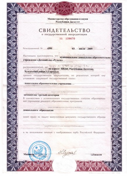 | Полное наименование образовательной организации* | Муниципальное казенное дошкольное образовательное учреждение "Детский сад" "Ручеек" с.Гортколо |